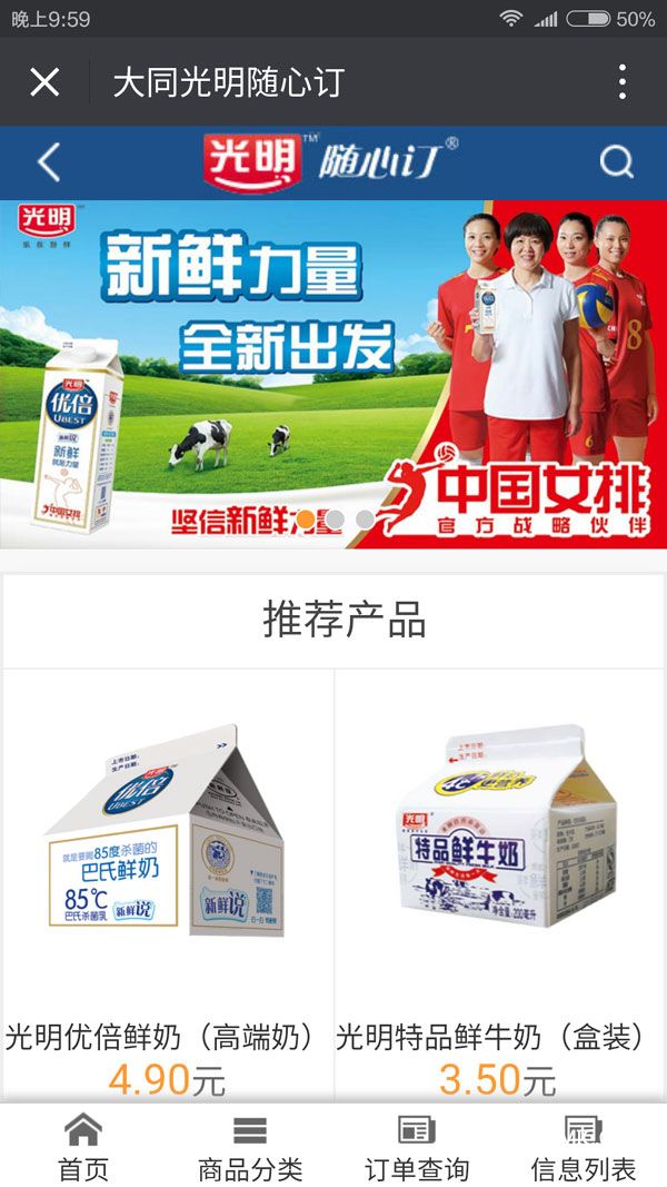 經(jīng)過(guò)緊張的開(kāi)發(fā)和功能調(diào)試,近日,大同光明巴氏鮮奶隨心訂公眾平臺(tái)正式上線。