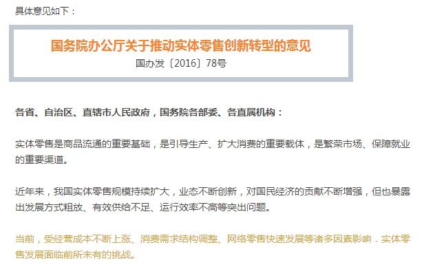 國務(wù)院辦公廳關(guān)于推動實體零售創(chuàng)新轉(zhuǎn)型的意見
