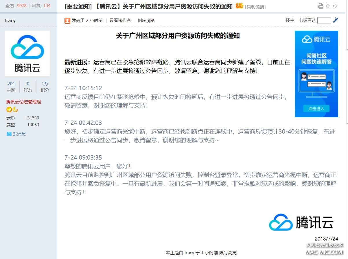 前沿?cái)?shù)控技術(shù)在微博中表示,在業(yè)務(wù)量的需求下,公司使用了騰訊云,可“災(zāi)難”發(fā)生在2018年7月20日。接下來(lái)的兩天,騰訊云組織了技術(shù)專(zhuān)家來(lái)對(duì)此次故障進(jìn)行補(bǔ)救,但前沿?cái)?shù)控技術(shù)公司數(shù)據(jù)還是丟失了。